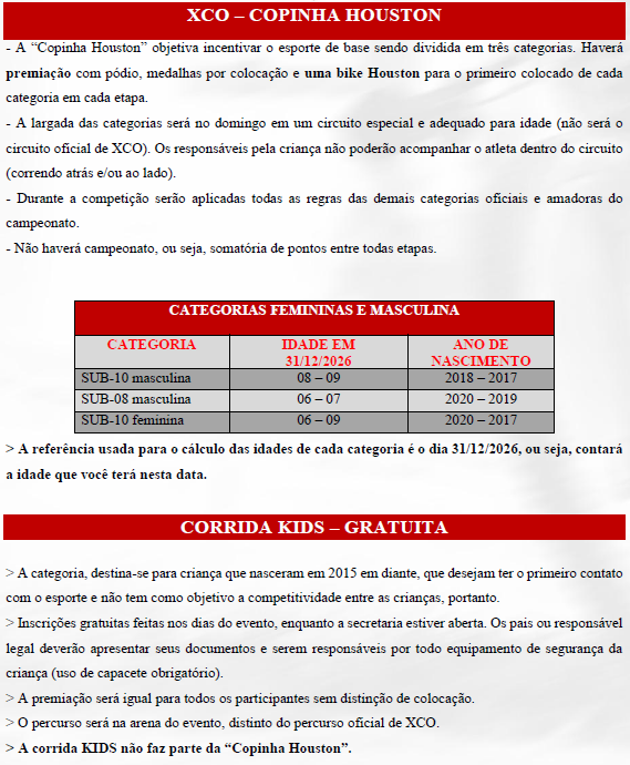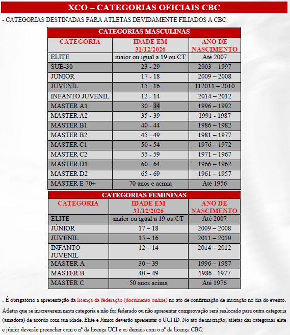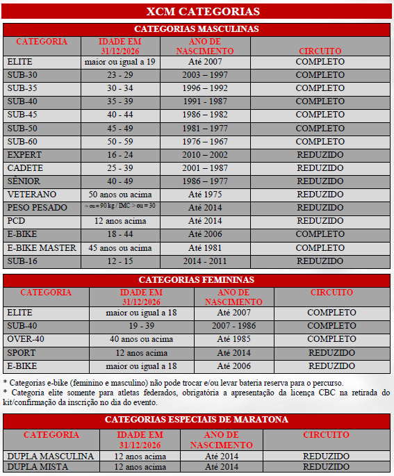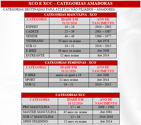 Categorias XCO, XCC e XCM: